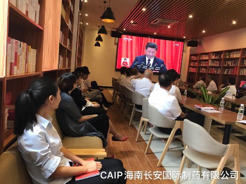為加強黨建工作及加強黨員的培訓力度,公司安排長安制藥黨支部書記到黨建共享平臺集中觀看了開幕大會現場的直播,公司內部也提前安排了全體黨員、預備黨員及入黨積極分子在公司會議室集中觀看直播,讓大家第一時間了解黨的十九大會議內容,通過學習十九大會議精神,從而提高黨員素質及帶動員工入黨的積極性。