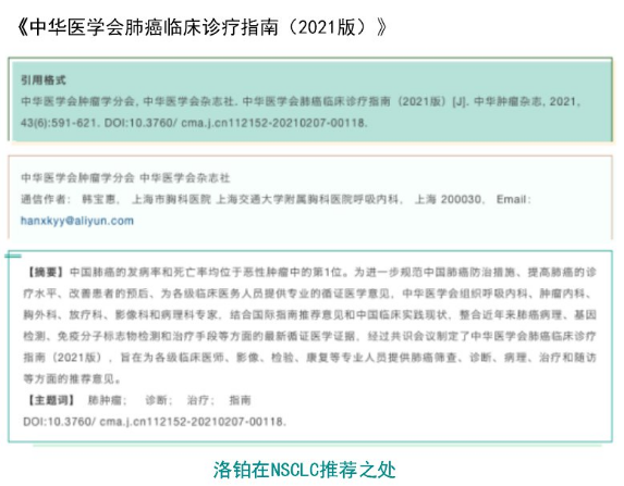 【洛鉑重磅】洛鉑進入最新版《中華醫學會肺癌臨床診療指南》2021版